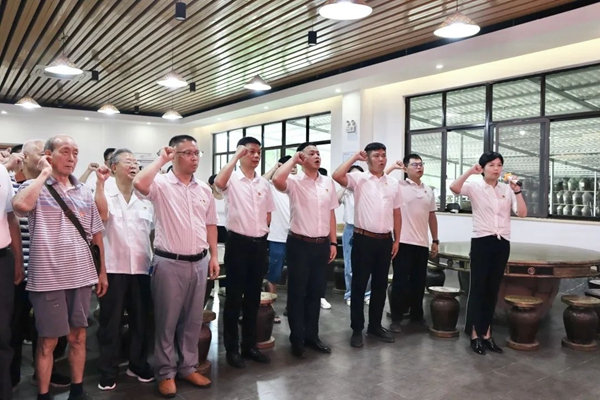 區(qū)委黨校常務(wù)副校長陸朝霞同志帶領(lǐng)全體黨員面向黨旗,高舉右臂,緊握右拳,面對(duì)鮮紅的黨旗重溫入黨誓詞。